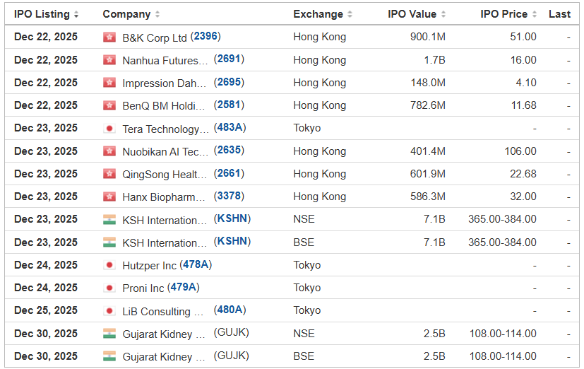 (Note: Riku Dining Group disclosed the terms for its IPO in an Oct. 8, 2025, filing with the SEC: The company is offering 2.25 million shares at a price range of $4.00 to $6.00 to raise $11.25 million. Background: Riku Dining Group filed its F-1 for its IPO in September 2025 without disclosing the terms. Estimated IPO proceeds are $16 million.)