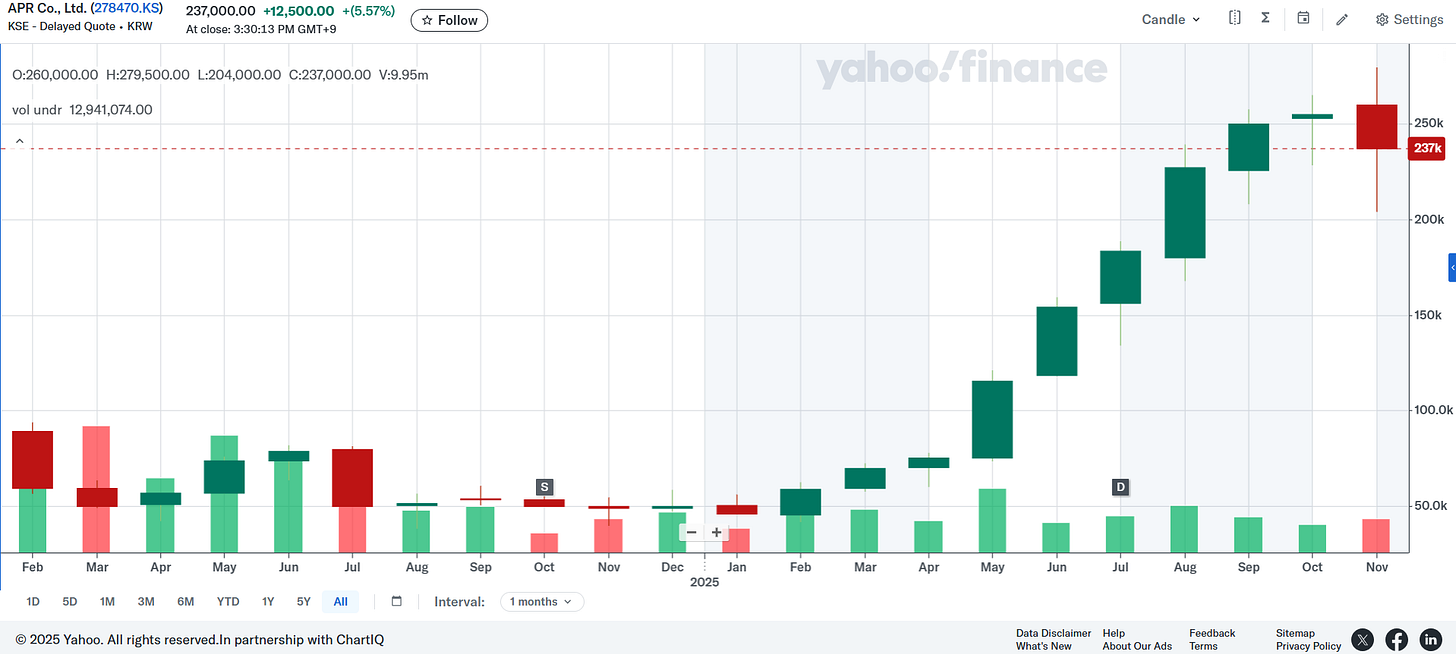 - Shares in South Korea’s APR Co Ltd (KRX: 278470) have surged 400% this year as it expands in US and Europe