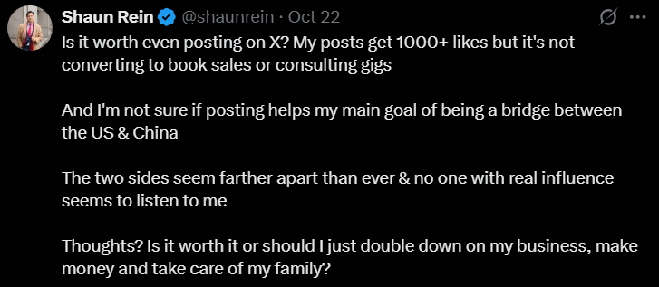 Needless to say, I don’t pay much attention to his China posts or tweets…