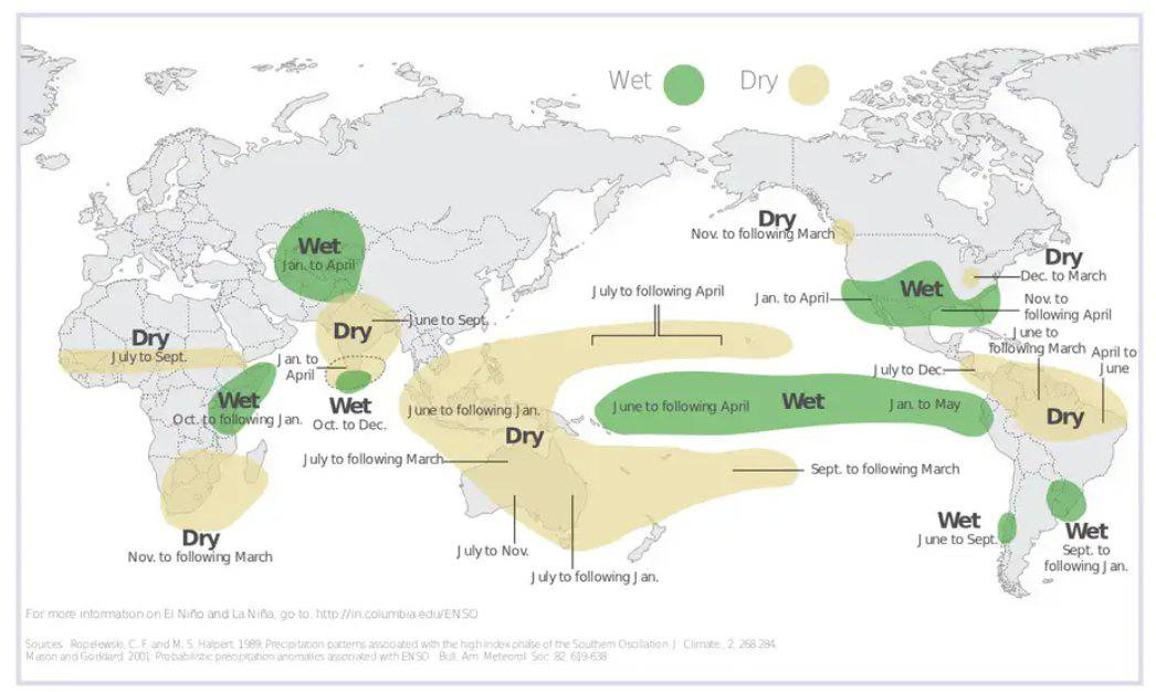 - Less rainfall in Asia, leading to droughts in Australia, Southeast Asia and even parts of Africa