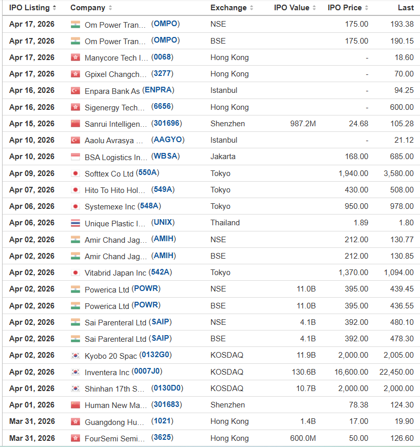 - Contemporary Amperex Technology Co. Ltd. (CATL) (SHE: 300750 / HKG: 3750 / SGX: HCCD / OTCMKTS: CYATY) listed in May 2025 by selling 135.579m shares at HK$263/share. The overallotment option of 20.337m shares was also exercised fully. The stock is up 151% since then.