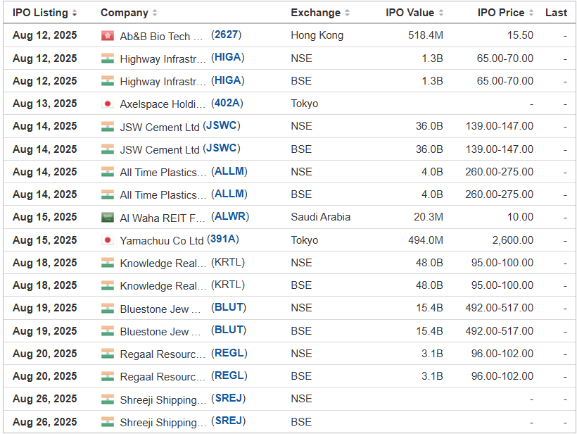 (Note: Hang Feng Technology Innovation Co., Ltd. is offering 1.375 million shares at an assumed IPO price of $4.00 to raise $5.5 million, according to its F-1/A filing dated July 25, 2025.)