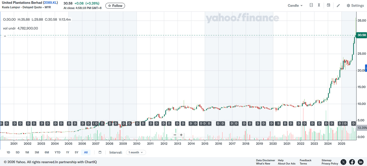 - 🇲🇾 🇮🇩 United Plantations Berhad (KLSE: UPBMF / OTCMKTS: UPBMF) – One of the larger medium-sized plantation groups in Malaysia. Upstream plantation operations in Malaysia + Indonesia + several downstream refining activities. 🇼 🏷️