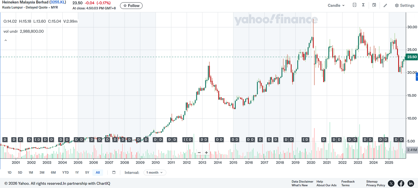 - 🇲🇾 Heineken Malaysia Bhd (KLSE: HEIM) – Produces, packages, markets, & distributes alcoholic beverages primarily in Malaysia. 51% held indirectly by Heineken NV (AMS: HEIA / FRA: HNK1 / OTCMKTS: HEINY) via its wholly owned subs. GAPL Pte Ltd. 🇼 🏷️