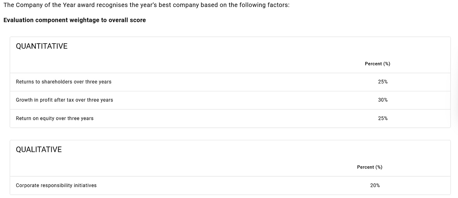 With that said and getting back to the The Edge Billion Ringgit Club 2025, I realize these sorts of award events are often paid-for and sponsored corporate PR events that probably don’t mean much (in fact, there was such an article in a local Malaysian paper a some years ago about all of these “phony” pay-to-win award dinner ceremonies for local companies…), but this one is a little different given the methodology: