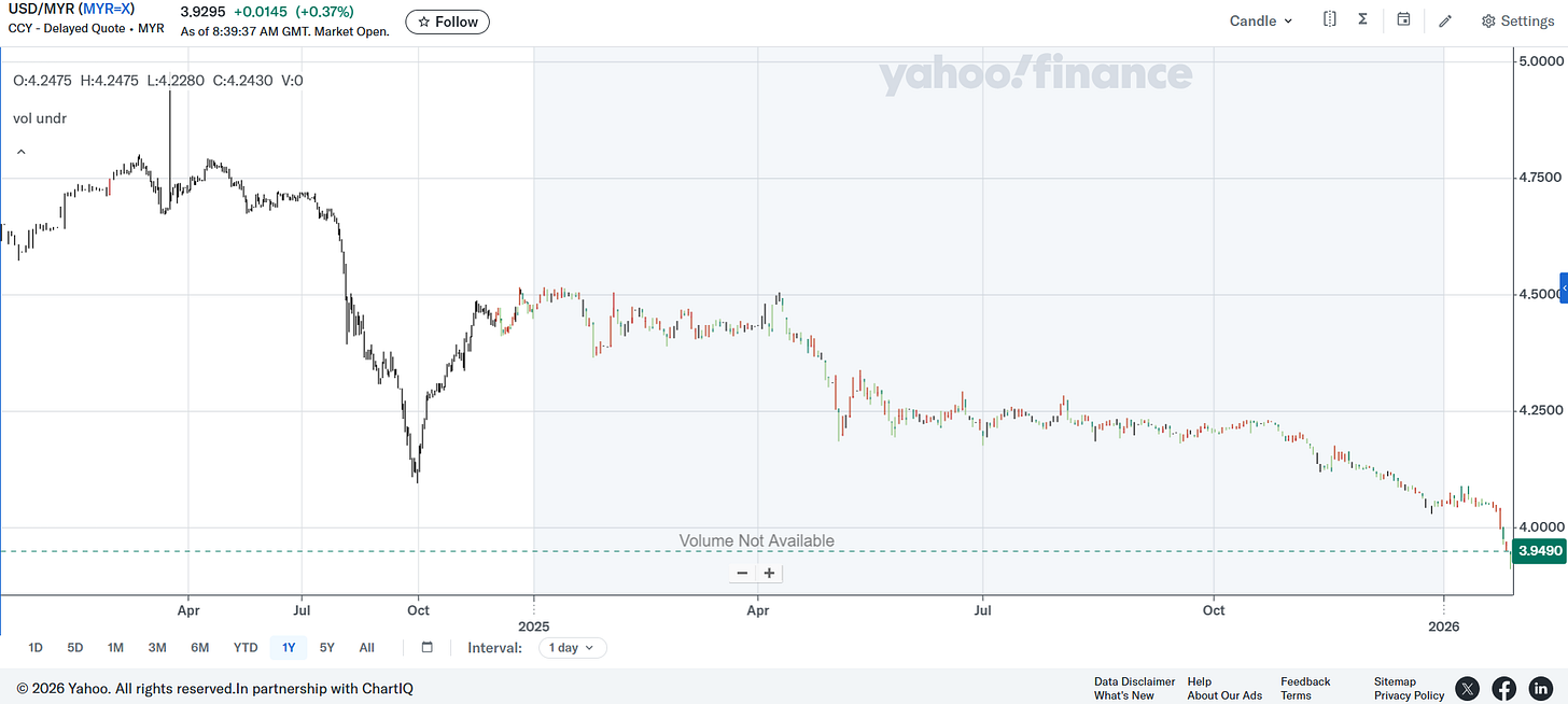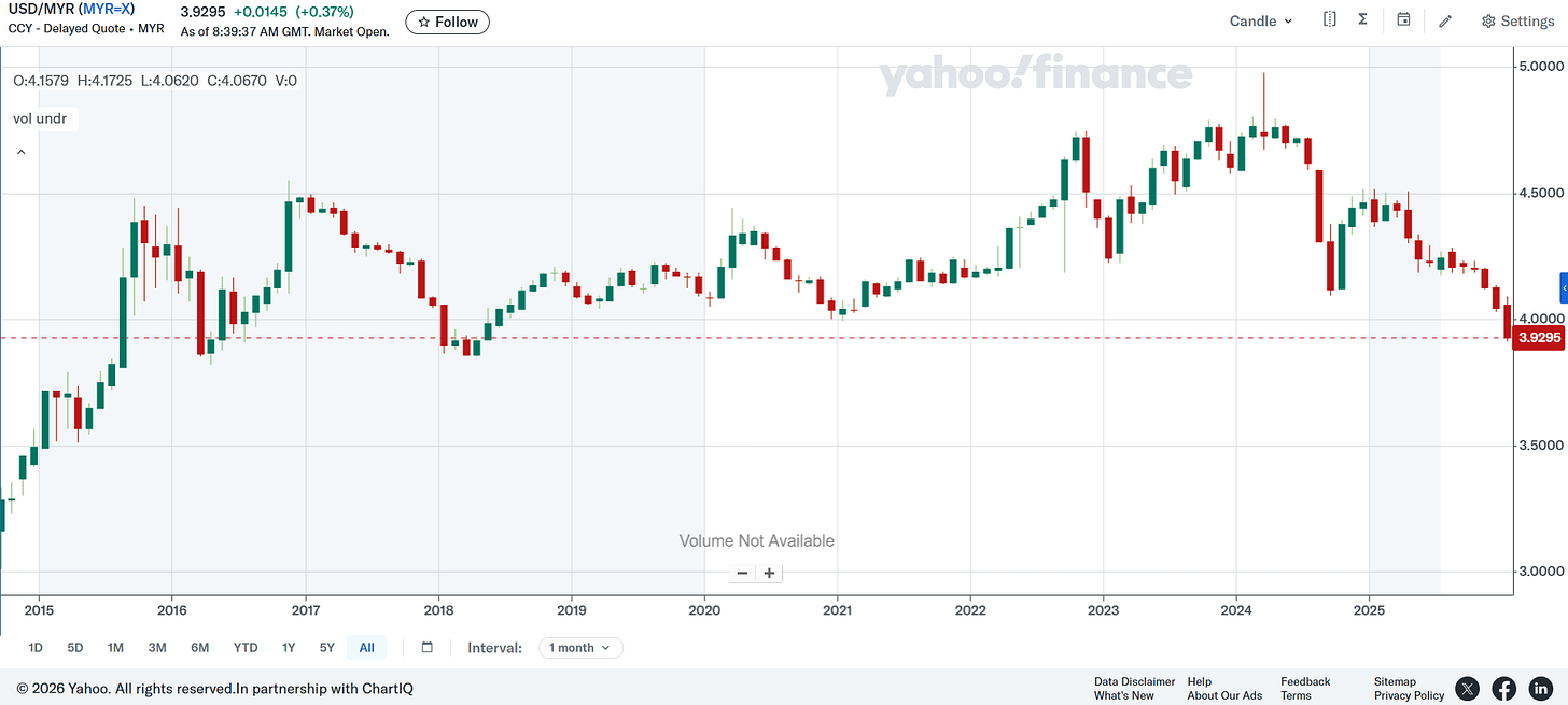 This piece from earlier this month contained a good reality check as the range cited does feel like a more reasonable range the Ringgit should be trading at (and may quickly move back like it did during the last brief runup) that’s ultimately better for the Malaysian economy and ordinary Malaysians:
