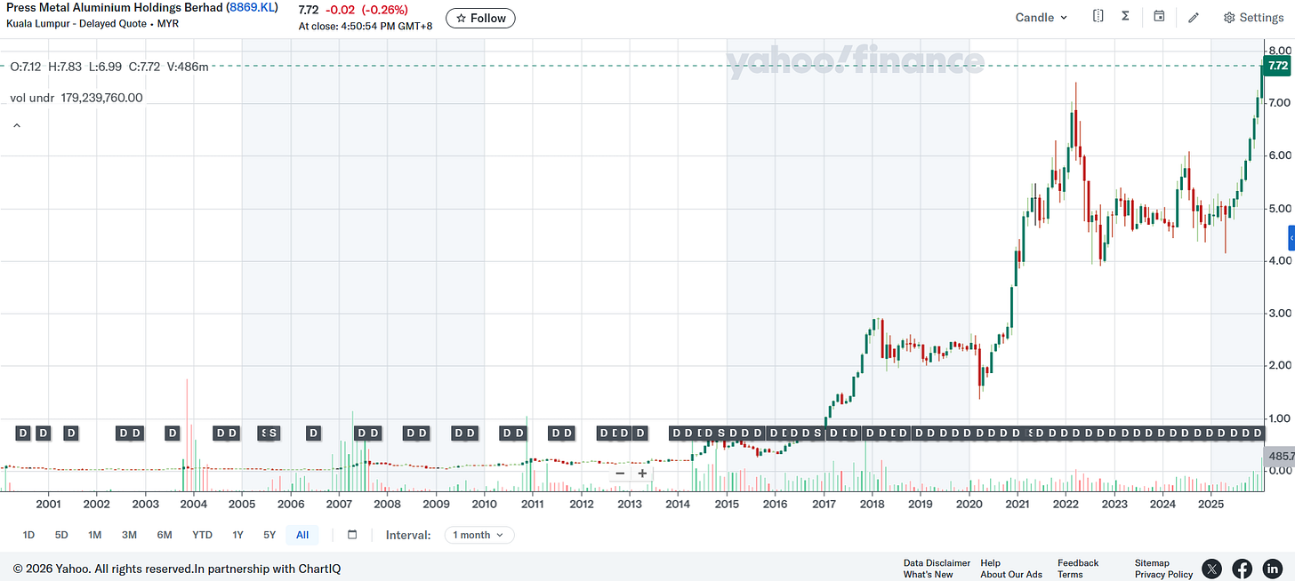 - 🌐 Press Metal Aluminium Holdings Bhd (KLSE: PMETAL) – Integrated aluminium producer. 🏷️